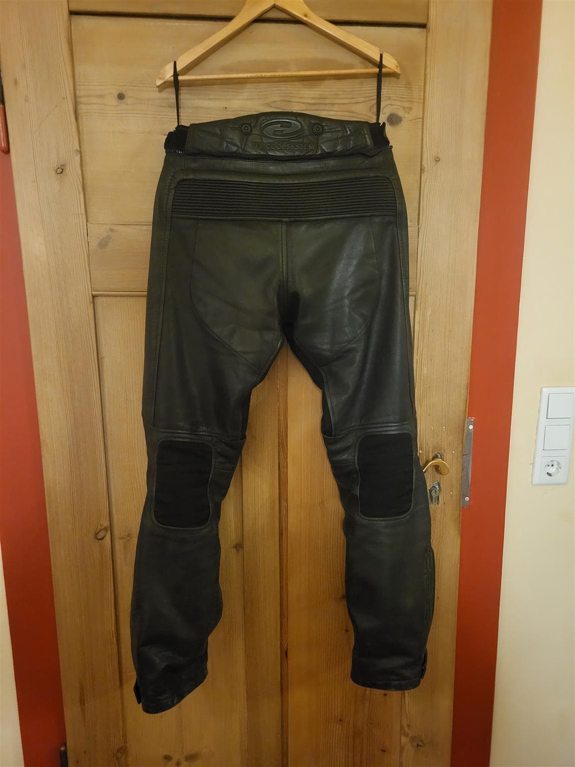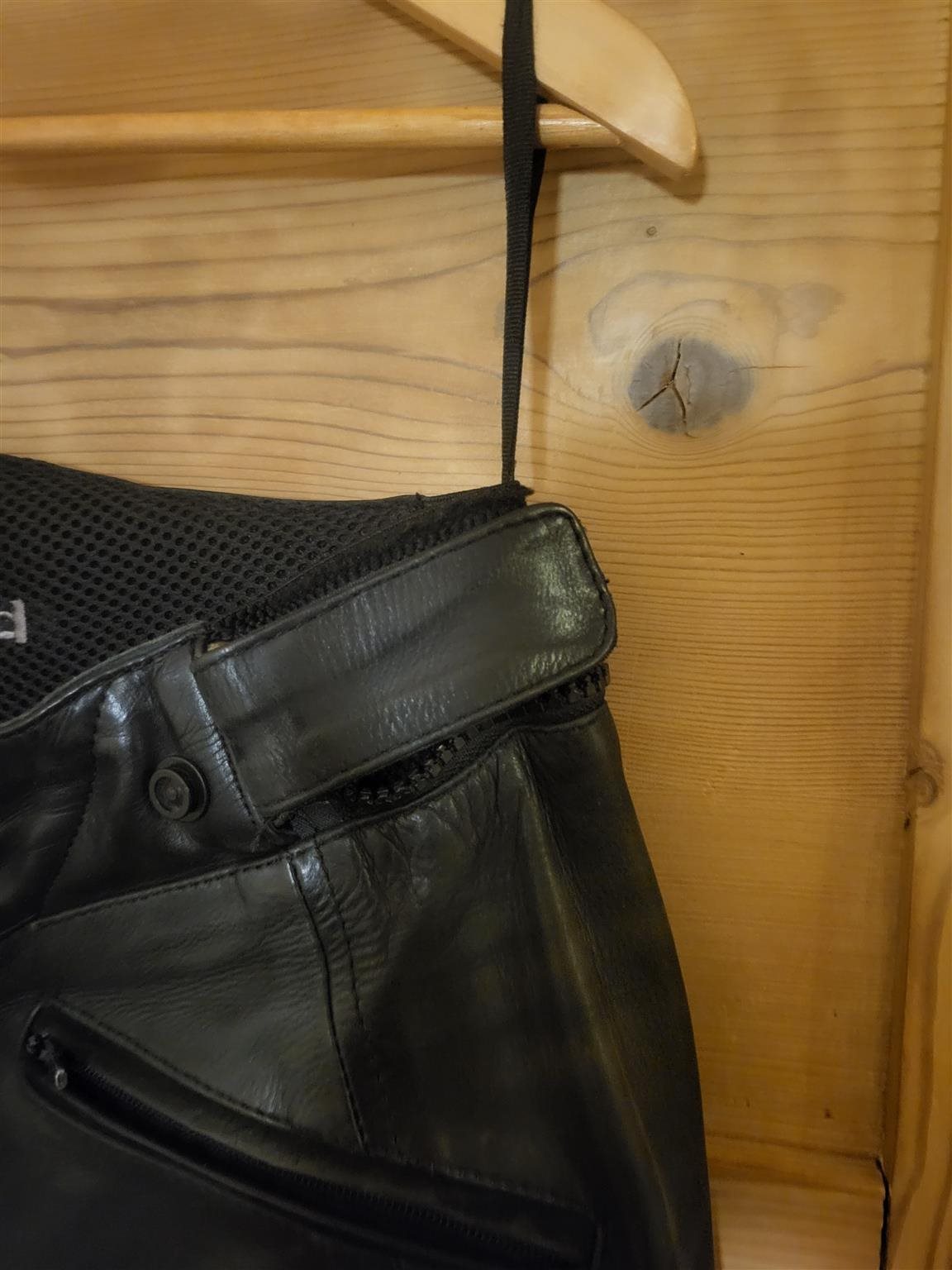 Lederhose hat einen geraden Schnitt wie eine Jeans.