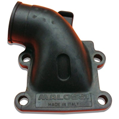 Der Ansaugkrümmer ist der Einlaufkanal für das Luft-Benzin-Gemisch zum Motor über das Lamellenventil.Einfluss auf die MotorleistungDie Gesamtleistung eines Motors wird von mehreren Teilleistungen bestimmt:volumetrische Leistungthermodynamische Leistungmechanische LeistungDie volumetrische Leistung beschreibt das Verhältnis zwischen der (als Volumen ausgedrückten) Gemischmenge, die in die Verbrennungskammer gelangt, und dem Hubraum des Motors.Zu den Hauptfaktoren, die die volumetrische Leistung beeinflussen, zählen Reibungsverluste des Gemischs auf seinem Weg vom Lufteinlass bzw. Luftfilter bis in den Verbrennungsraum. Ein wesentlicher Einflussfaktor ist dabei der Ansaugkrümmer: Das Gemisch muss den Krümmer mit möglichst geringen Verlusten durchströmen. Deshalb sollten starke Durchmesseränderungen und spitze Winkel im Strömungsverlauf vermieden werden.Strömung, Speicherwirkung und DrehzahlbereichDer Ansaugkrümmer dient außerdem als Speicherraum“ für das frisch einströmende Gemisch. Da sich die Gemischsäule mit einer gewissen Geschwindigkeit bewegt, benötigt sie Zeit zum Abbremsen, wenn das Lamellenventil schließt. Das Gemisch sammelt sich im Krümmer und drückt gegen die Lamellen. Dadurch ist jedem Krümmer ein bestimmter Drehzahlbereich zugeordnet, in dem die maximale Leistung erreicht wird (abgestimmter Krümmer).Zusätzlich übernimmt der Krümmer die Halterung des Vergasers, indem er ihn mit dem Motorgehäuse oder dem Zylinder verbindet. Falls erforderlich, kann er dabei auch Vibrationen dämpfen, die vom Gehäuse auf den Vergaser übertragen werden. Das hilft, die unerwünschte Emulsion von Luft und Benzin in der Schwimmerkammer zu reduzieren.Konstruktion und Entwicklung bei MALOSSIDieses scheinbar einfache Bauteil erfordert daher fundierte theoretische und praktische Entwicklung, um sein Potenzial optimal zu nutzen genau hier setzt MALOSSI an. Dank langjähriger Erfahrung in Versorgungssystemen hat MALOSSI eine neue Krümmerlinie aus Gummi und Aluminiumlegierung für Roller neuerer Generation entwickelt, die sowohl auf der Straße als auch auf Rennstrecken getestet wurde.Die Gummikrümmer von MALOSSI besitzen eine mehrteilige Struktur: Ein Aluminium-Einsatz wird in ein spezielles, öl- und benzinbeständiges Kunststoffmaterial eingebettet. So entsteht eine hohe Steifigkeit am Befestigungspunkt zum Motorgehäuse bei gleichzeitig notwendiger Elastizität des Krümmers.