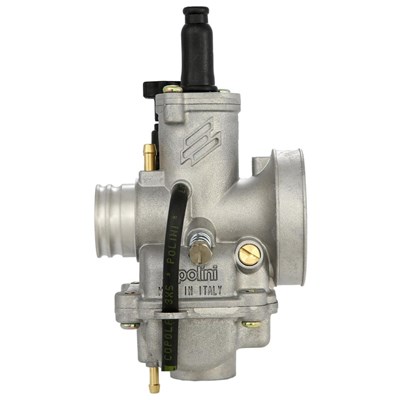 POLINI hat sich der großen Aufgabe angenommen einen komplett eigenen Vergaser neu und selbst zu entwickeln. Das Ergebnis ist die CP Vergaserserie mit Durchmessern von 17 24mm, mit kompakten Abmessungen und sehr niedrigem Gewicht. Vergaser in konventioneller Rundschieber Bauform, mit den Eigenschaften von modernen Flachschieber Vergasern. Der Ansaugtrichter ist kurzgehalten und verfügt über ein innovatives Design, das den Luftstrom optimieren soll. Besonderen Wert hat POLINI bei der Konstruktion auf die Positionierung des Zerstäubers gelegt. Er soll in jeder Schieberposition effektiv angeströmt werden und sauber arbeiten können. Schwimmer, Schwimmernadel und Benzinzufluss werden präzise gefertigt und in der Produktion sorgfältig kontrolliert, um einen konstanten Benzinstand auch unter extremen Bedingungen, zu gewährleisten. Besonders die kompakte Bauform der POLINI CP Vergaser macht ihn zur idealen Wahl bei allen Modellen mit beengten Platzverhältnissen, wie z.B. den Vespa Smallframe oder den Vespa Wideframe Modellen. Um die Vergaser kompatibel zu möglichst vielen Motoren, Ansaugstutzen und Luftfiltern und damit einfach montierbar zu halten, stehen Flansche mit unterschiedlichen Durchmessern zur Verfügung. Fazit: Günstige, kompakte und gute Alternative zu den altbewährten DellOrto und modernen Keihin Vergasern auf dem Markt. SIP-TIPP: Passenden Luftfilter und Ansaugstutzen gleich mitbestellen. Ein Düsenset hilft den Vergaser richtig abzustimmen.