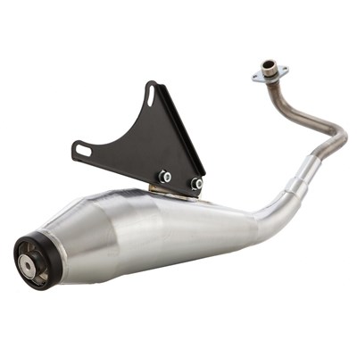 Der TECNIGAS GP4 Rennauspuff besticht durch seine unvergleichliche Optik und ähnelt stark den Anlagen der modernen MotoGP-Bikes. Der Hersteller verspricht ein kleines Plus an Leistung, ohne weitere Abstimmungen an Einspritzanlage/Vergaser oder Variomatik vornehmen zu müssen.Die Anlage besteht aus separatem Krümmer und Endtopf, das Montagematerial ist im Lieferumfang enthalten. Der Dämpfer wurde vernickelt, somit ist dieser ideal vor Korrosion geschützt, ohne dass Lackabplatzer oder Rostbeulen auftreten.Durch die hohe Verarbeitungsqualität wie z. B. saubere Schweißnähte und Oberfläche ist die Anlage äußerst robust und langlebig und kann aufgrund der Passgenauigkeit sofort Plug&Play verbaut werden. Fazit: Sehr gutes Preis-/Leistungsverhältnis und sportlichere Optik. Komplettanlage / Marterial Stahl / vernickelt / ohne KAT SIP-TIPP: Die Anlage (für Einspritzmotoren) ist kompatibel mit den Malossi Lambdaemulatoren. Sportvario und Kupplung runden das Setup ab.