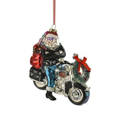 Christbaumschmuck mit Motiv Santa Rocker auf Motorrad schwarz/silber