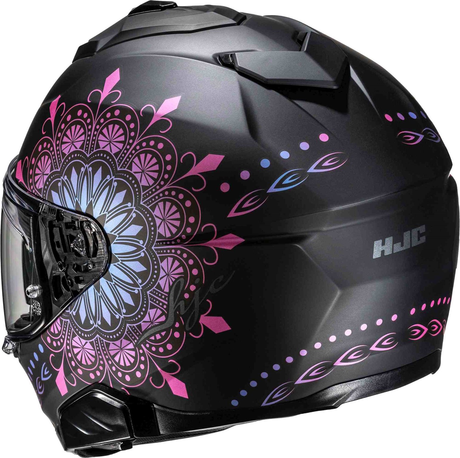 Der i71 setzt mit seinem neuen, schlanken Schalendesign neue Maßstäbe für ein Sport-Touring-Modell. Der Helm aus fortschrittlichem Polycarbonat hat jetzt 3 Außenschalen und 6 verfügbare Größen, um Gewicht und Komfort für den Fahrer zu optimieren. Die neu angeordnete obere Belüftungsöffnung und die vergrößerte Kinnbelüftungsöffnung ermöglichen eine verbesserte Luftzufuhr und Belüftung. Ebenfalls neu beim i71 sind das Visier und die Sonnenblende. Das HJ-38 Pinlock-Visier ist mit einem neuen Druck-Schiebe-Verschlusssystem ausgestattet, das für mehr Sicherheit sorgt, dennoch auch mit Handschuhen leicht zu bedienen ist. Die neue Sonnenblende (HJ-V12) bietet dem Fahrer die Möglichkeit, die Sonnenblende in 3 Positionen nach vorne zu verstellen (bis zu 10 mm), um einen idealen Sonnenblendschutz zu gewährleisten. Der i71 ist auch mit den Smart HJC Bluetooth-Systemen der zweiten Generation kompatibel.