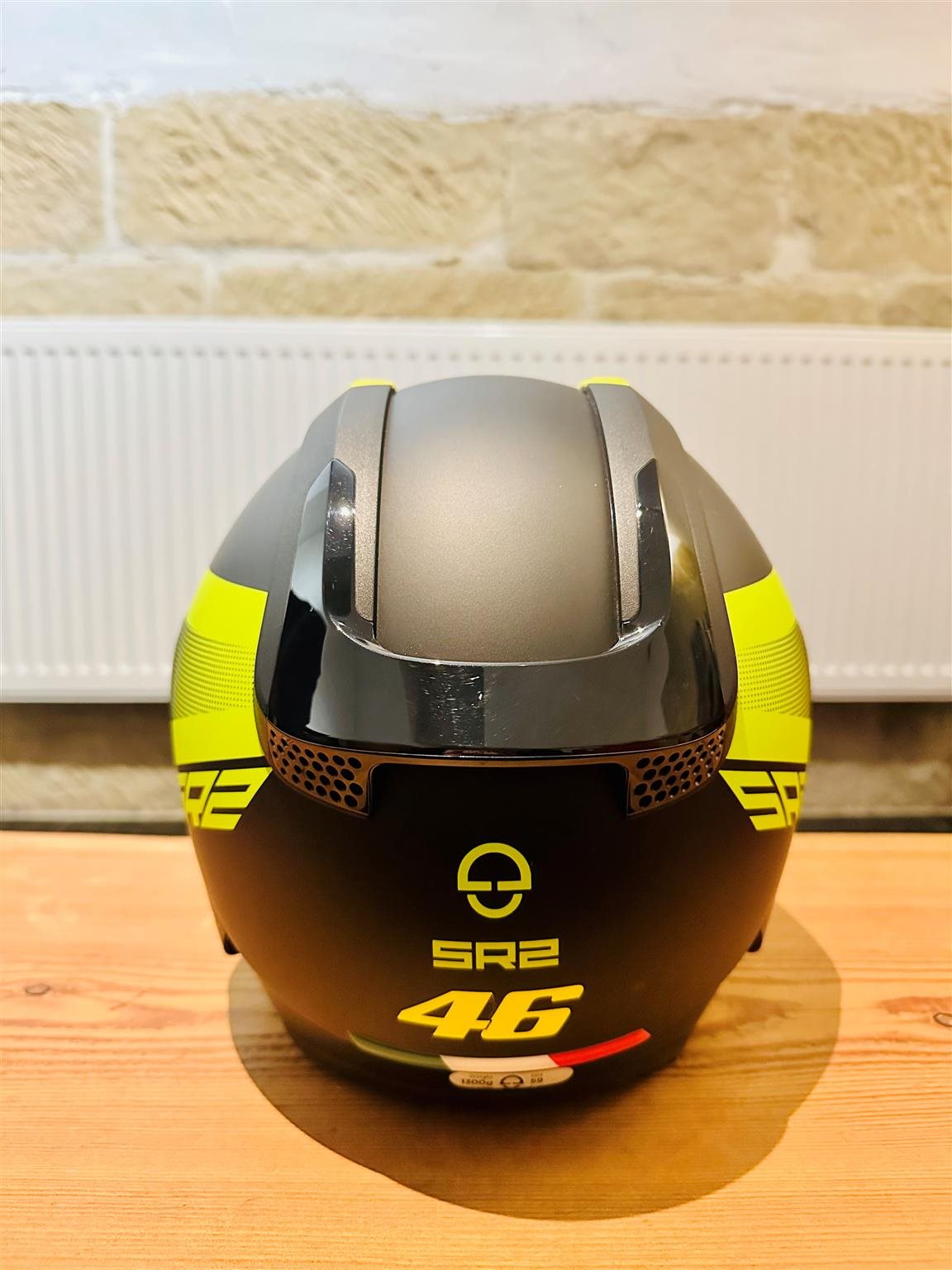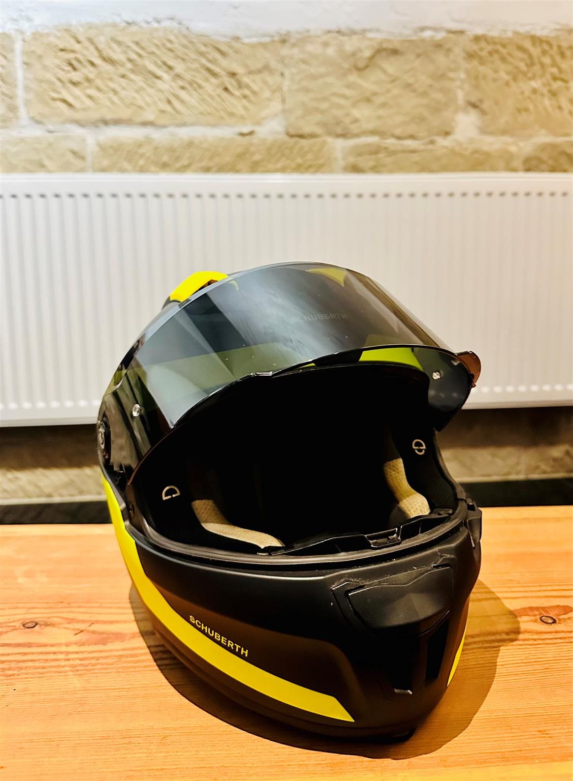 Zum Verkauf steht ein originaler Schuberth SR2 Integralhelm in der auffälligen Farbkombination Schwarz / Neongelb, Größe L.