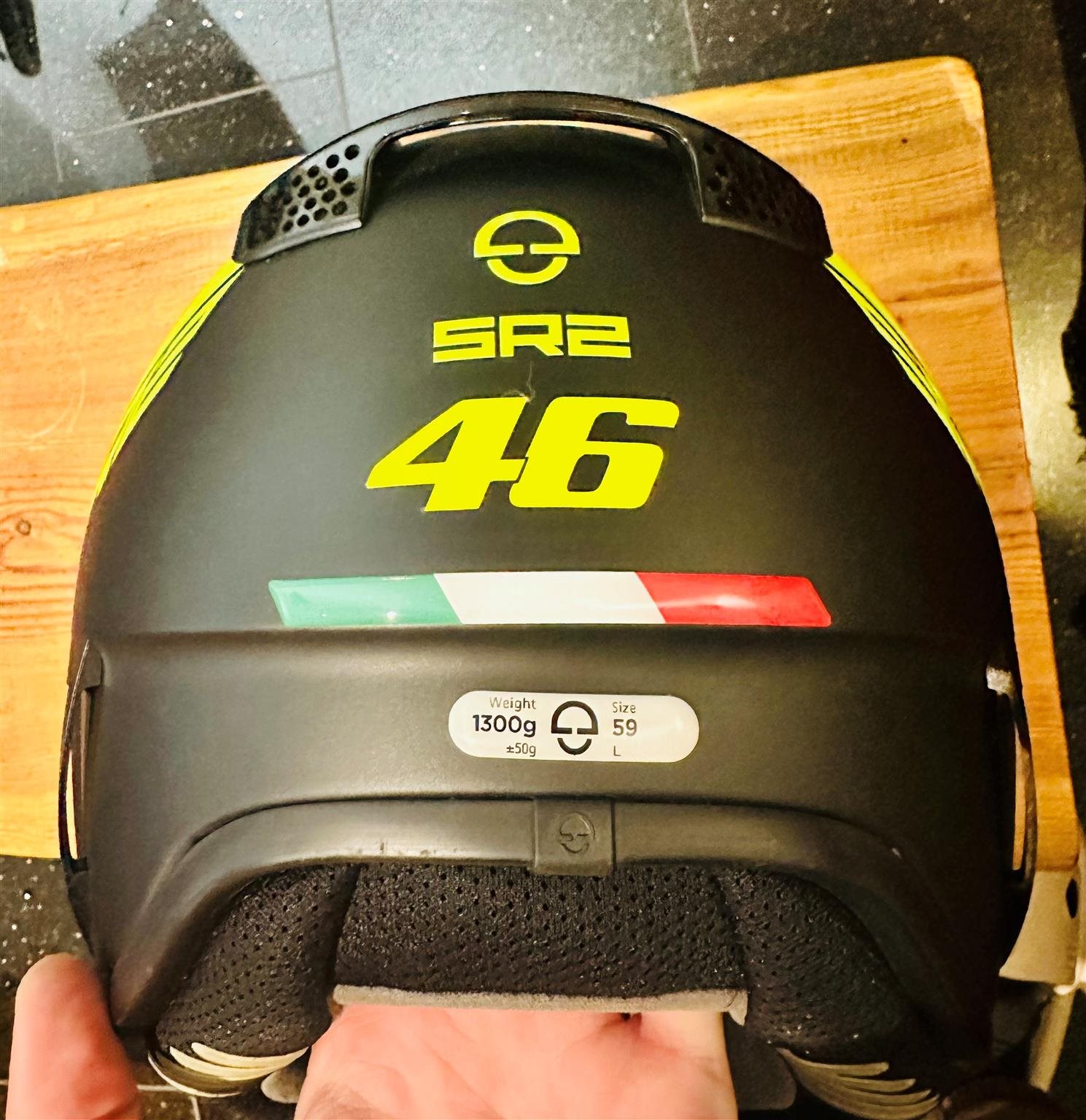 Auf der Rückseite befindet sich eine italienische Flagge mit der Zahl 46, was dem Helm eine sportliche, individuelle Optik verleiht.
