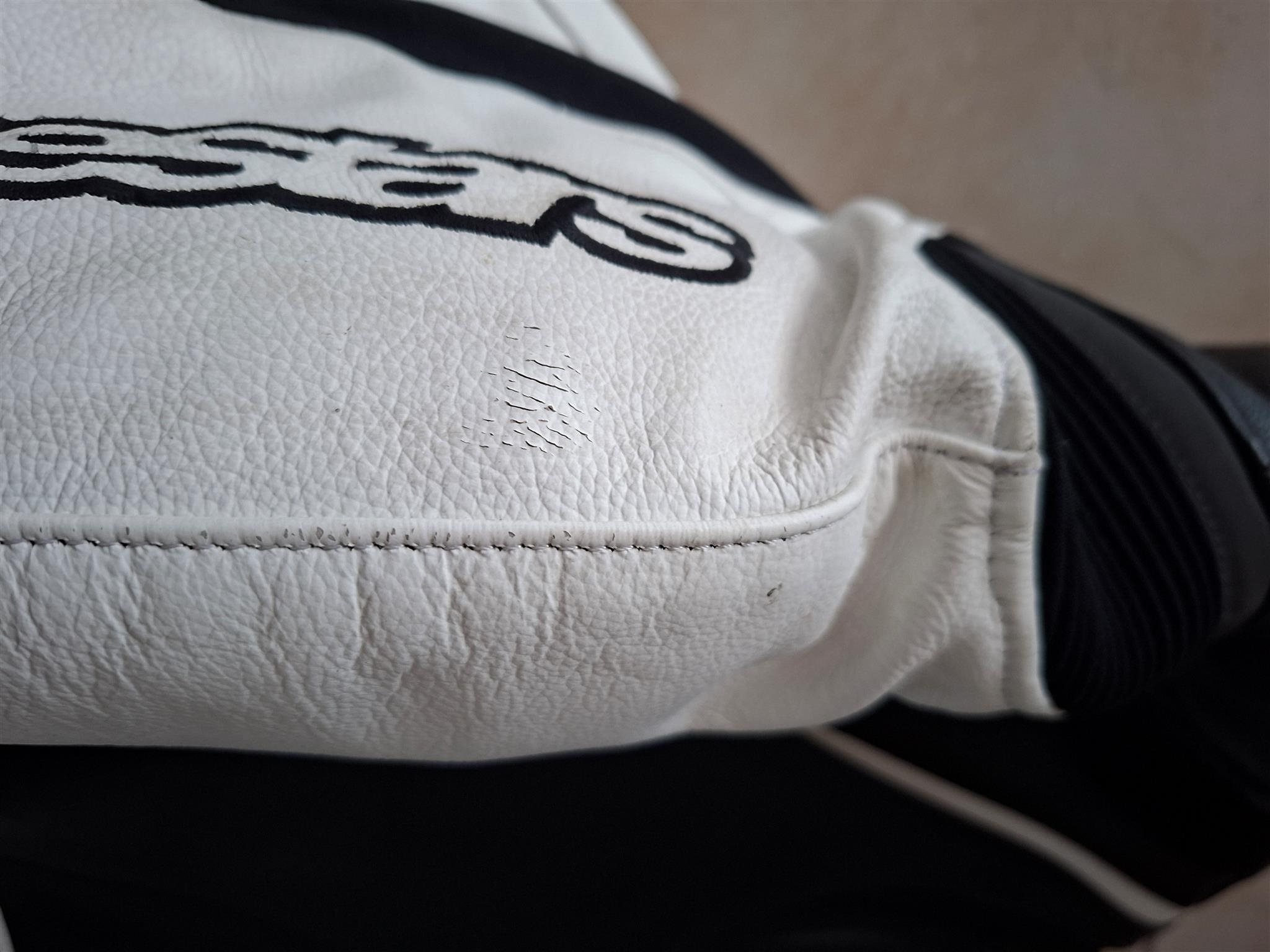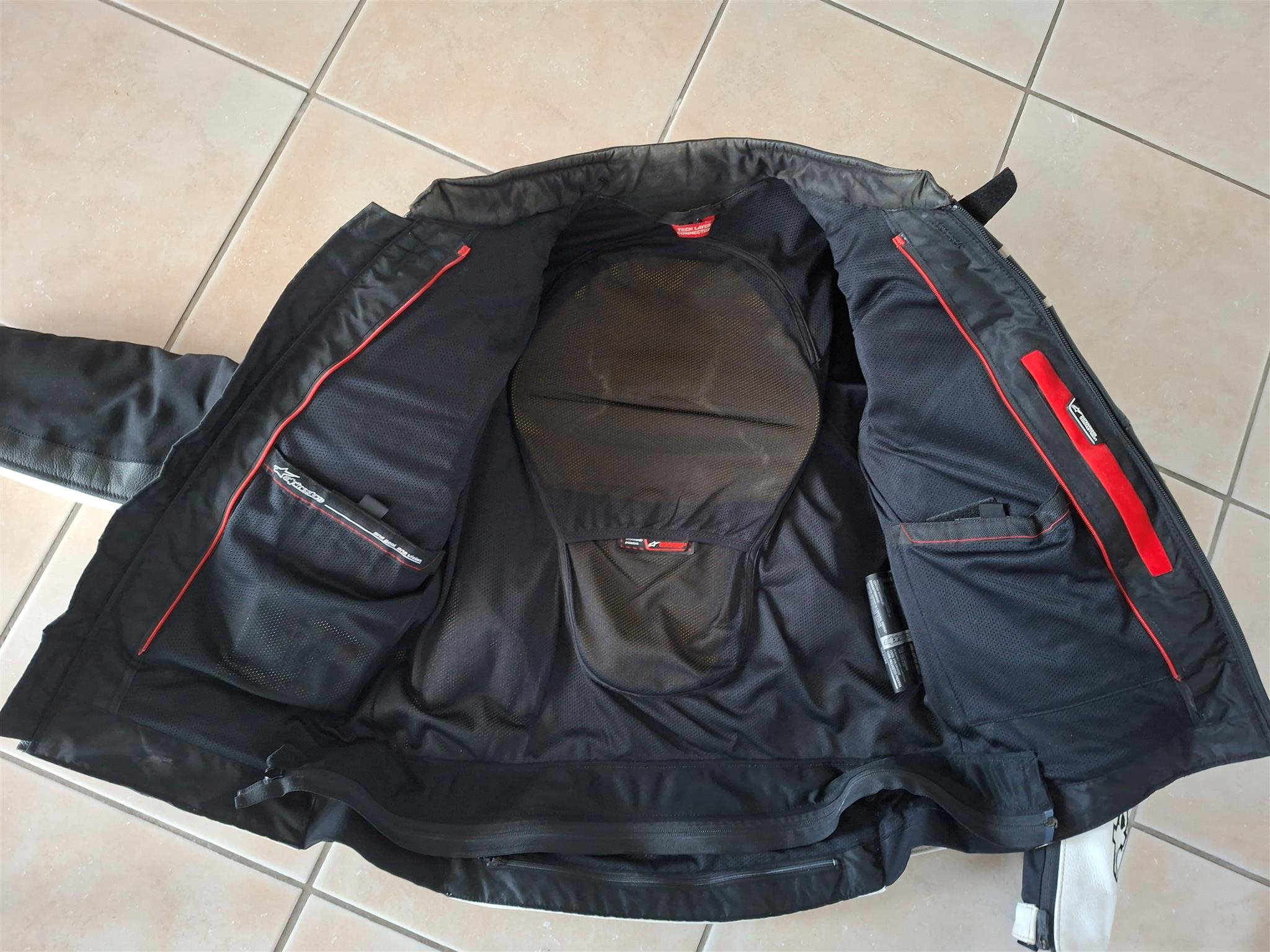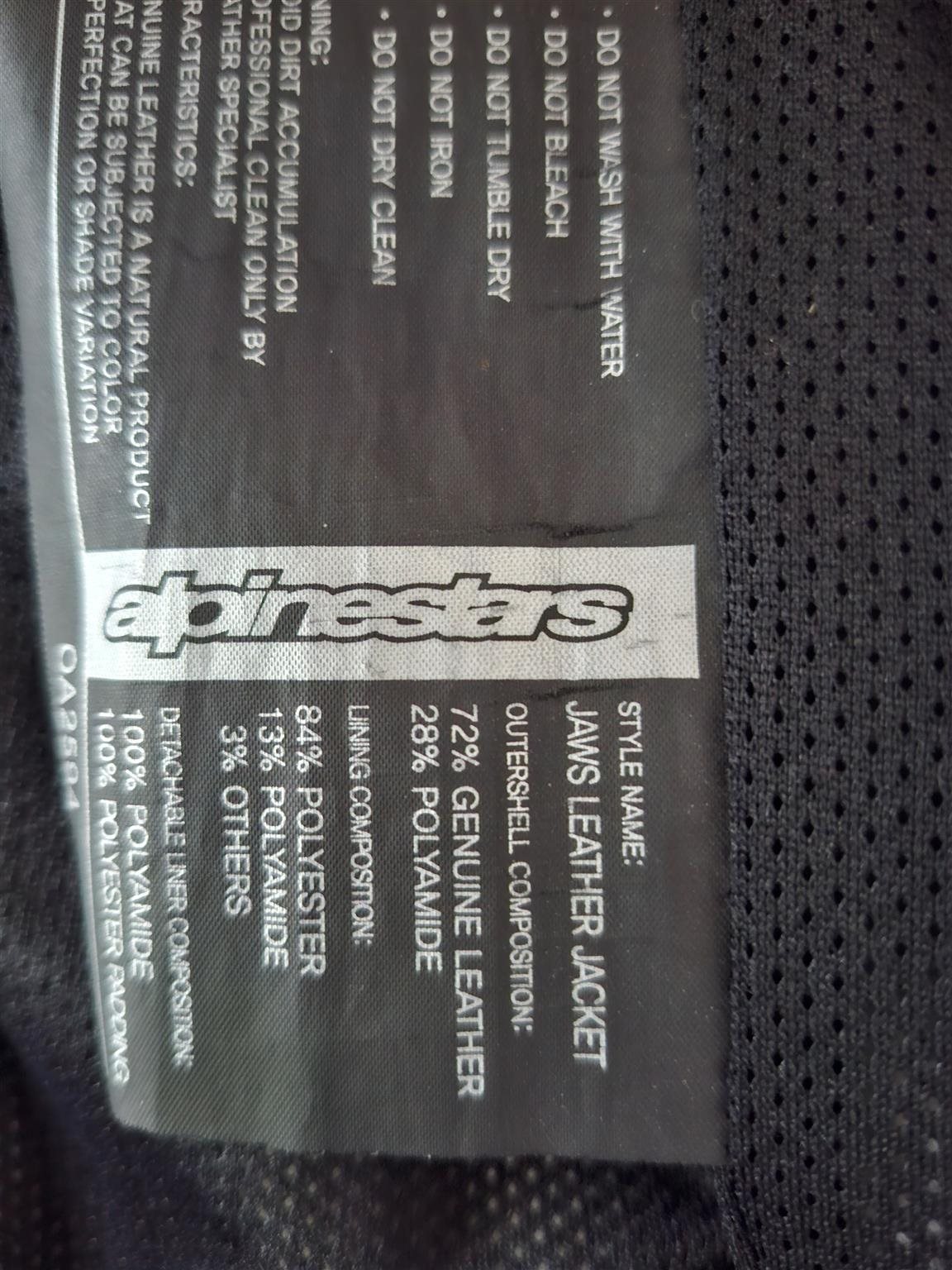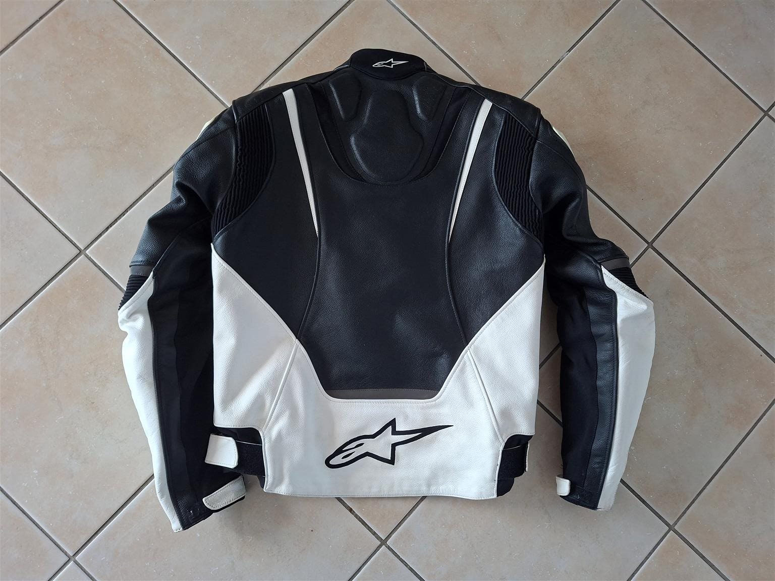 Verkaufe eine Alpinestars Jaws Herren-Lederjacke mit Protektoren in schwarz/weiß, Größe USA 40/EU 50 (s. Bild).