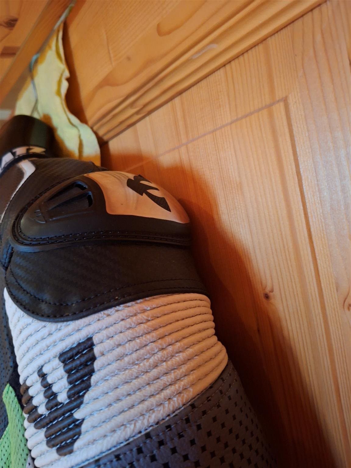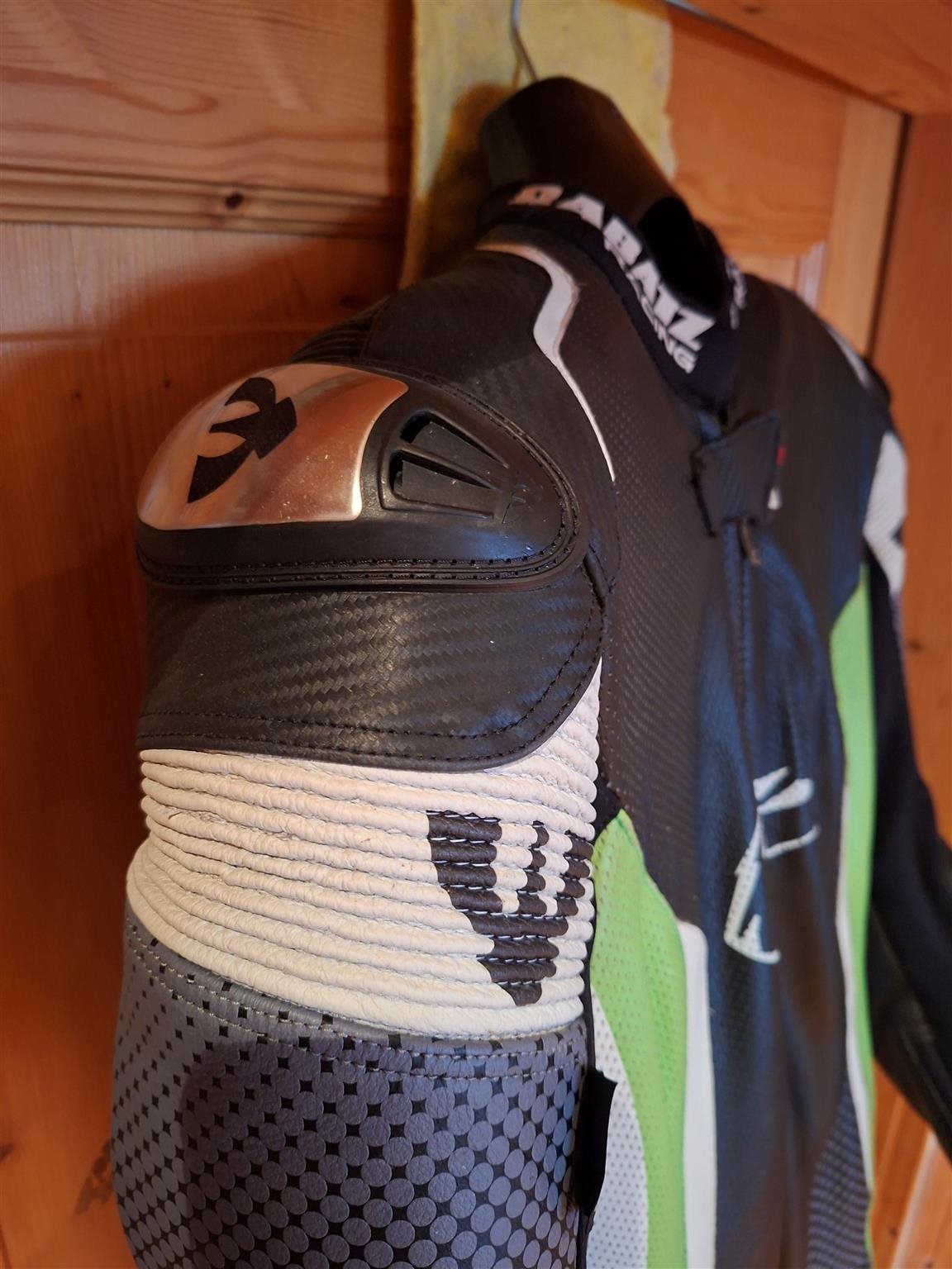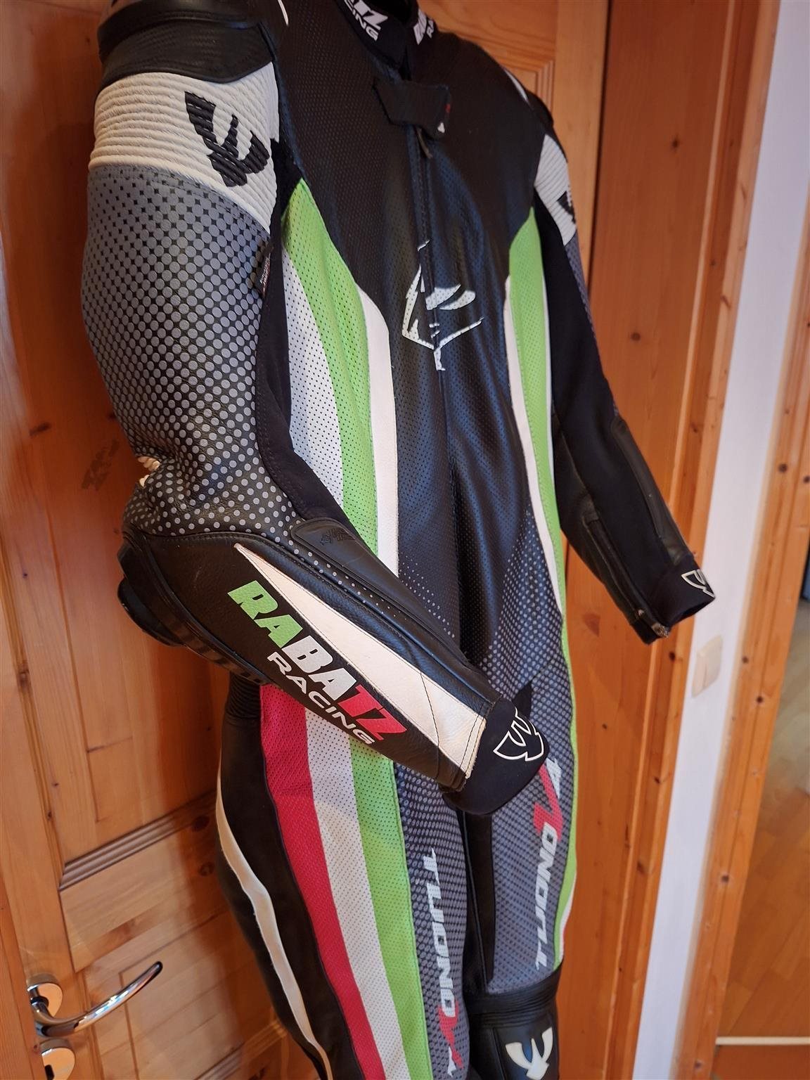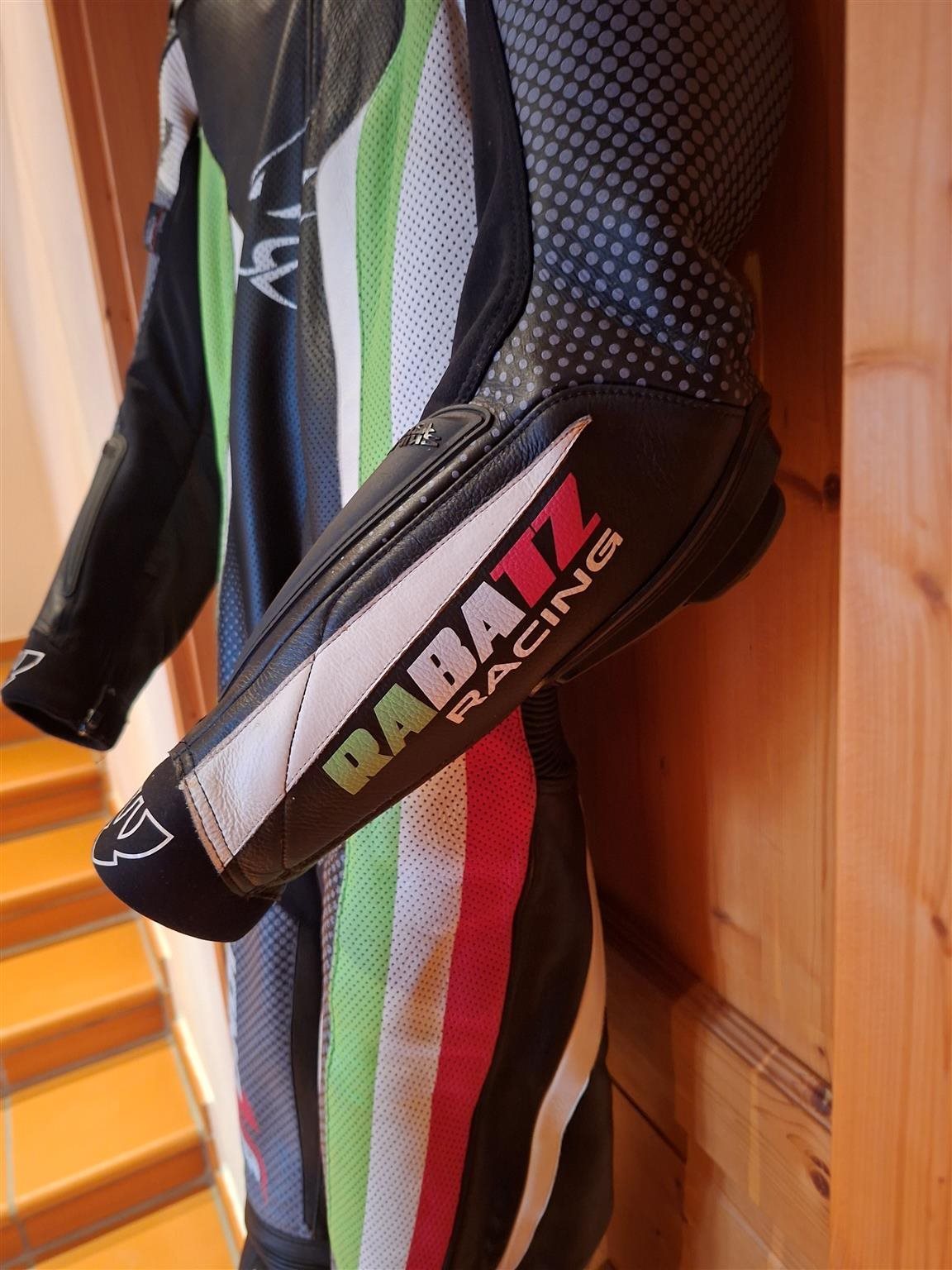 Verkaufe meinen maßgeschneiderten,sehr hochwertigen Rindslederkombi mit Sas-Tec Protektoren von Rabatz Racing,ein Unikat da ich ihn optisch selbst zusammengestellt habe. Der Kombi bezieht sich auf die Aprilia Tuono V4 Factory. Er wurde auch für eine Airbagweste angefertigt,ich habe ihn mit und ohne Weste getragen. Mein Name steht auf der Innenseite vom Reißverschluss,kann überdruckt werden.Kombi ist wie neu,wurde 5x getragen. Ich bin 1,72cm groß und wiege 67-70kg. Das einzigartige Stück kann gerne anprobiert werden. Neupreis war 1595€,Rechnung ist vorhanden.