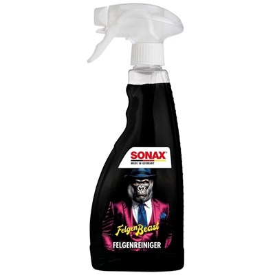 SONAX FelgenBeast säurefreier Felgenreiniger mit Wirkindikator für biestige Verschmutzungen.Der Felgenreiniger SONAX FelgenBeast lässt Schmutz keine Chance und entfernt selbst biestige Verschmutzungen. Geeignet ist er für alle Stahl- und Leichtmetallfelgen sowie für lackierte, verchromte, polierte und matte Felgen. Dabei ist er besonders materialschonend: Er ist säurefrei und greift weder die Felgenoberfläche noch Radbolzen an.Ein besonderes Merkmal ist der Wirkindikator: Der Reiniger verfärbt sich rötlich und zeigt damit die optimale Wirkdauer an, während er seine volle Reinigungskraft entfaltet. Der robuste Sprühkopf erzeugt einen breiten Sprühstrahl, wodurch sich die Reinigungsflüssigkeit gleichmäßig und sparsam auftragen lässt. Durch die gelartige Konsistenz wirkt der Felgenreiniger intensiv ein und macht auch mit dem Gemisch aus Bremsstaub, Öl- und Straßenverschmutzungen kurzen Prozess.Wie alle SONAX Felgenreiniger ist auch das FelgenBeast für Räder mit Reifendruck-Kontrollsystem (RDKS) geeignet und wird in einer attraktiven, handlichen 1-L-Sprühflasche geliefert. SONAX empfiehlt den kraftvollen Reiniger als Beast unter den Felgenreinigern mit starker Reinigungsleistung und überragendem Preis-Leistungs-Verhältnis.ProduktanwendungFelgen vor der Anwendung abkühlen lassenFlasche schütteln.Sprühdüse durch Drehen öffnen und los geht es. Reiniger aus kurzer Distanz satt einsprühen. 2-4 Minuten einwirken lassen.Bei Kontakt mit Verschmutzungen verfärbt sich das SONAX Felgenbeast rötlich und entfaltet seine ganze ReinigungskraftBesonders biestige Verschmutzungen mit einer Bürste lösen geeignete Schutzhandschuhe tragenReiniger mit einem kräftigen Wasserstrahl oder Hochdruckreiniger restlos abspülenBITTE BEACHTEN:Vor der Anwendung an unauffälliger Stelle auf Materialverträglichkeit prüfen.Nicht auf nachlackierten Felgen, in praller Sonne oder auf warmen Felgen anwenden.Nicht antrocknen lassen.Vor Frost schützen.