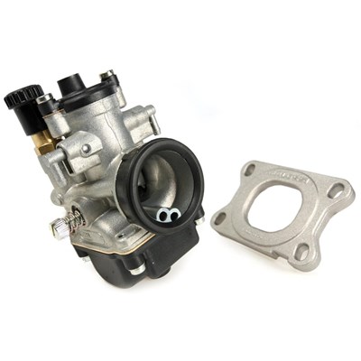 The greatest innovation of these new Malossi carburettor kits is the modular intake manifold. It allows to rotate the manifold into the flange according to the specific requirements of ones own vehicle, in order to identify which is the best angle for fitting the carburettor.