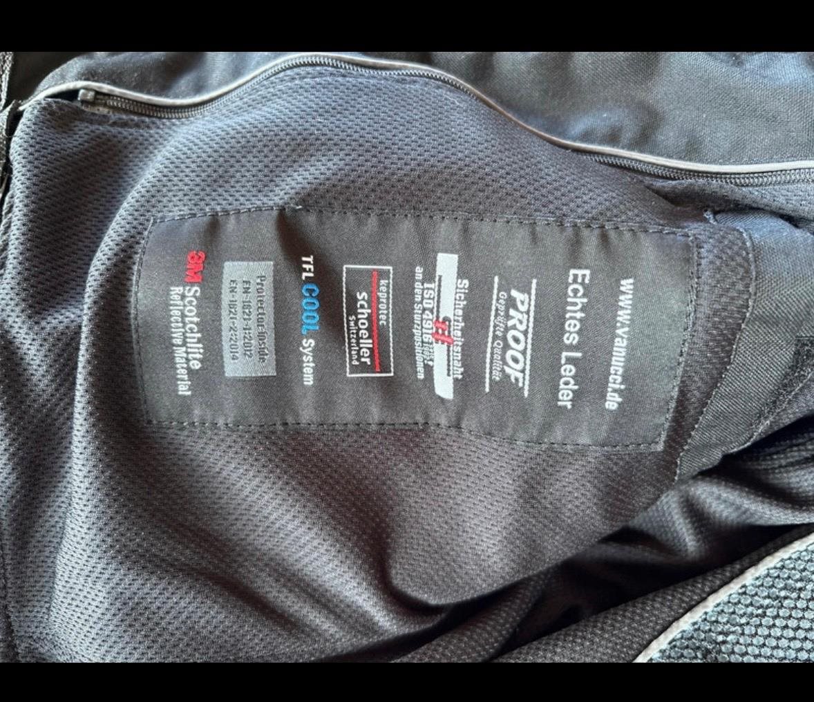 Verkauft wird eine Vanucci Motorradjacke mit Schulter und Ellbogenprotecktor.