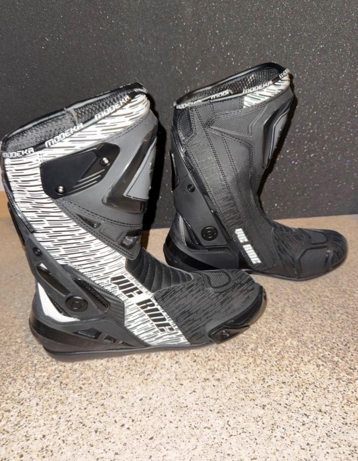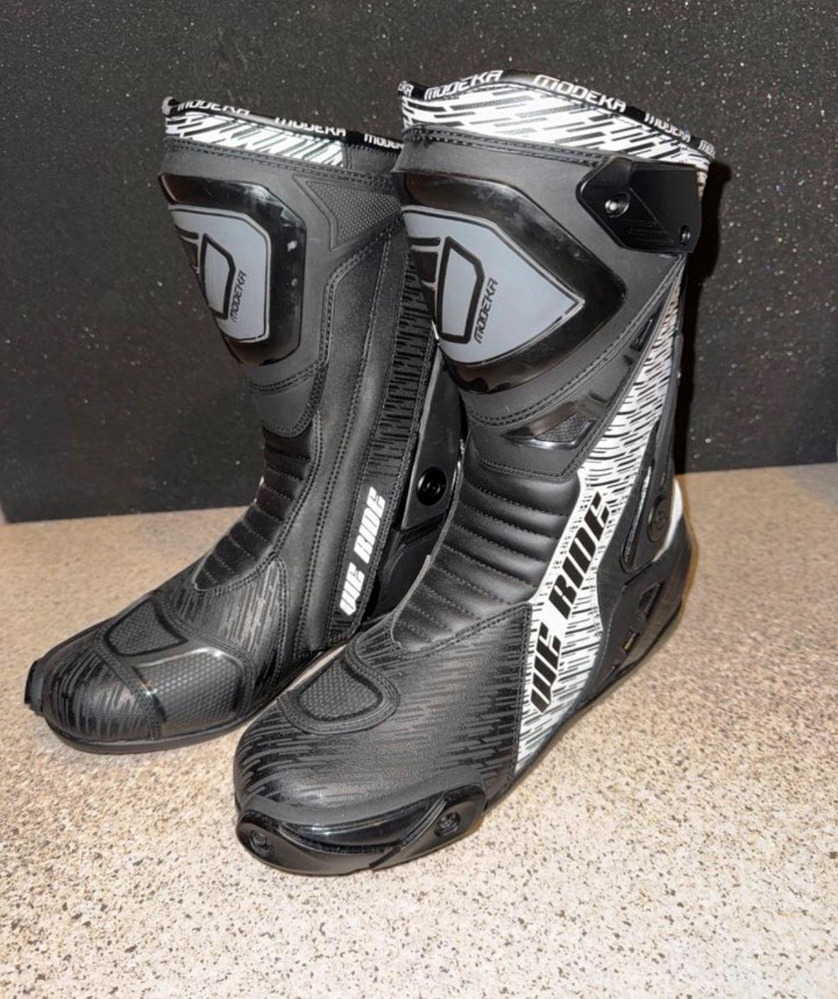 Hiermit verkaufe ich meine neuen Motorradschuhe von Modeka in Größe 44.