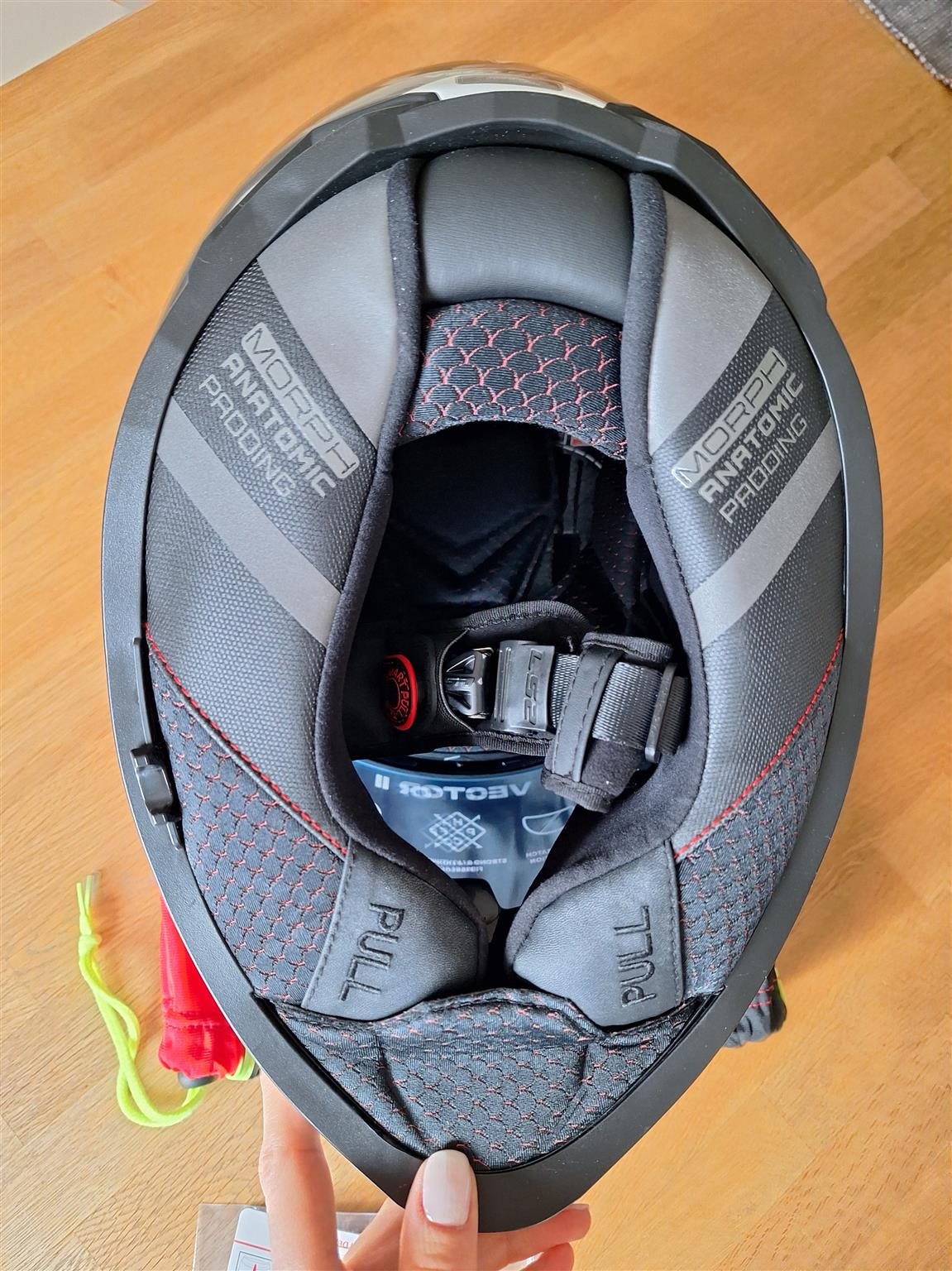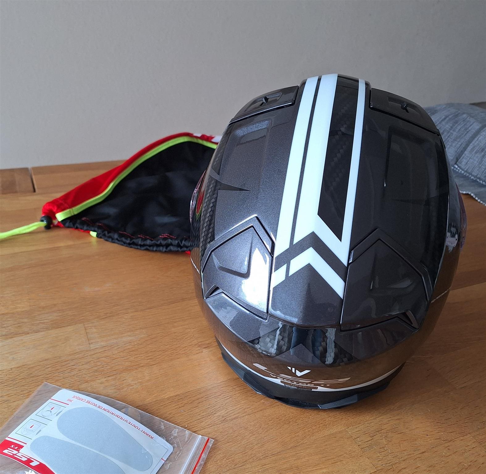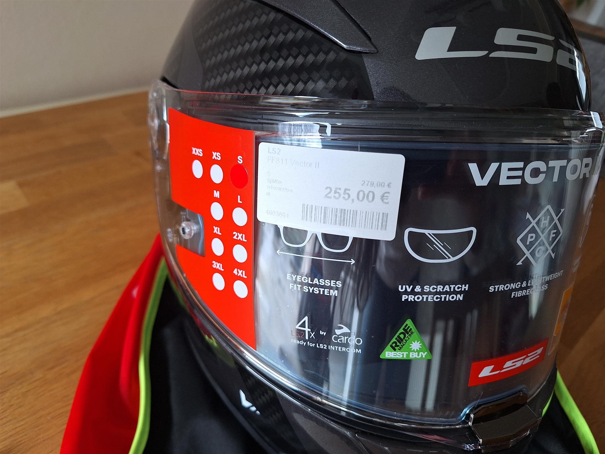 Der Helm wurde nur 1x im Geschäft anprobiert, seitdem liegt dieser geschützt im mitgekauften Aufbewahrungssack im Schrank.