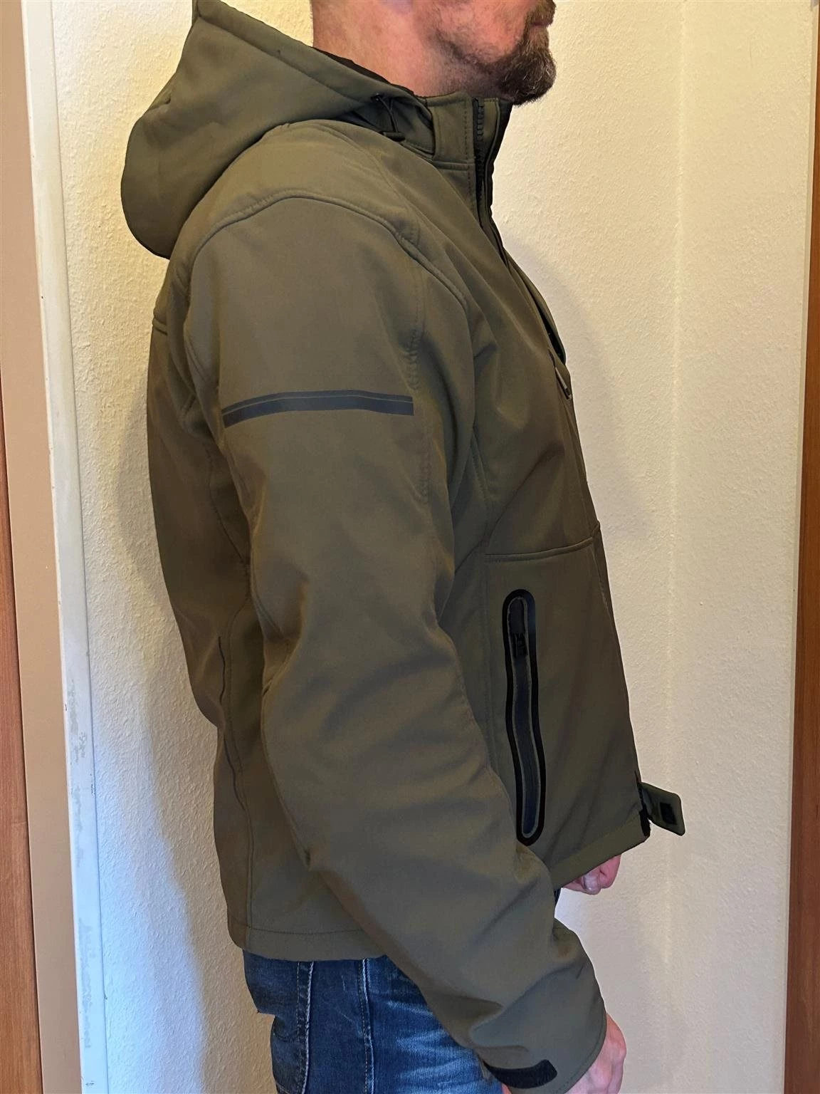 Die Jacke passt sich gut an und man hat auch noch Platz für was drunter zu ziehen, wenn es etwas kälter ist.