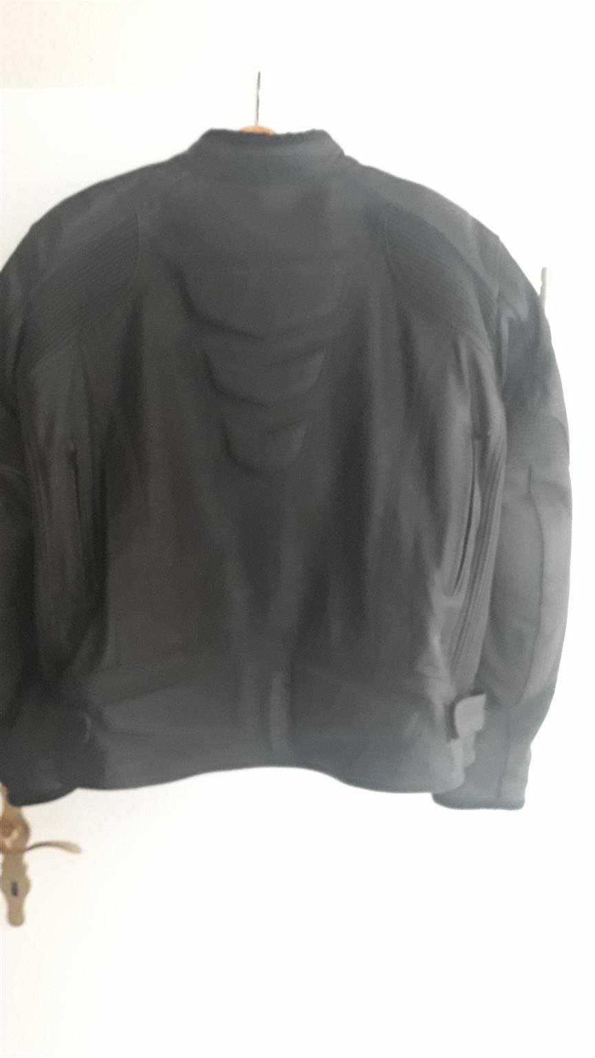 Die Jacke besteht aus robusten Rindsleder ,hat einen Rückenprotektor welcher herausnehmbar ist .