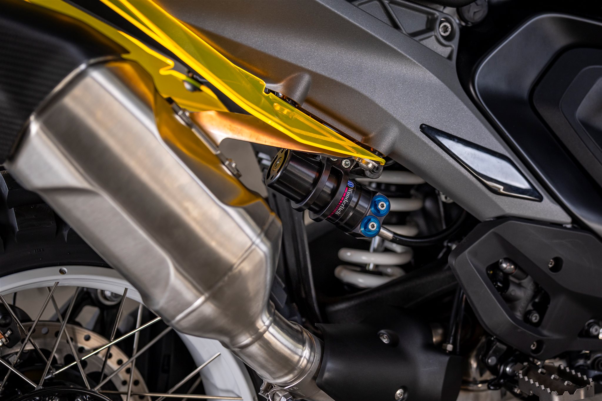 Die groben Stollenreifen, der nach oben gereckte Auspuff und das im Vergleich dazu eher zierlich wirkende, ansteigende Heck lassen keinen Zweifel: Dieses Bike kennt keine Grenzen.