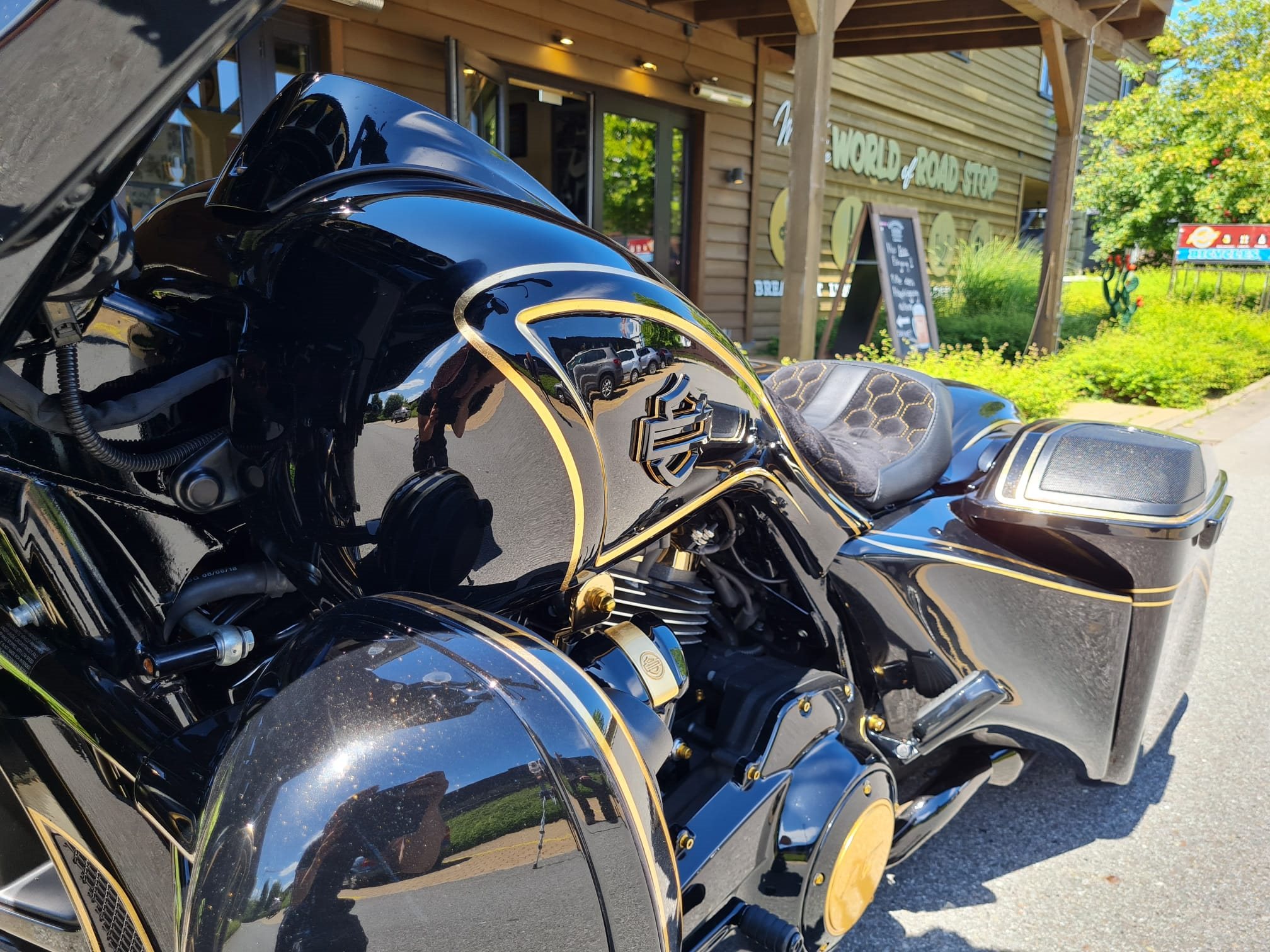 Schlaggold-Veredelung: Tankdeckelring und der Lufteinlass des Batwings wurden mit Schlaggold belegt und mit Klarlack versiegelt.