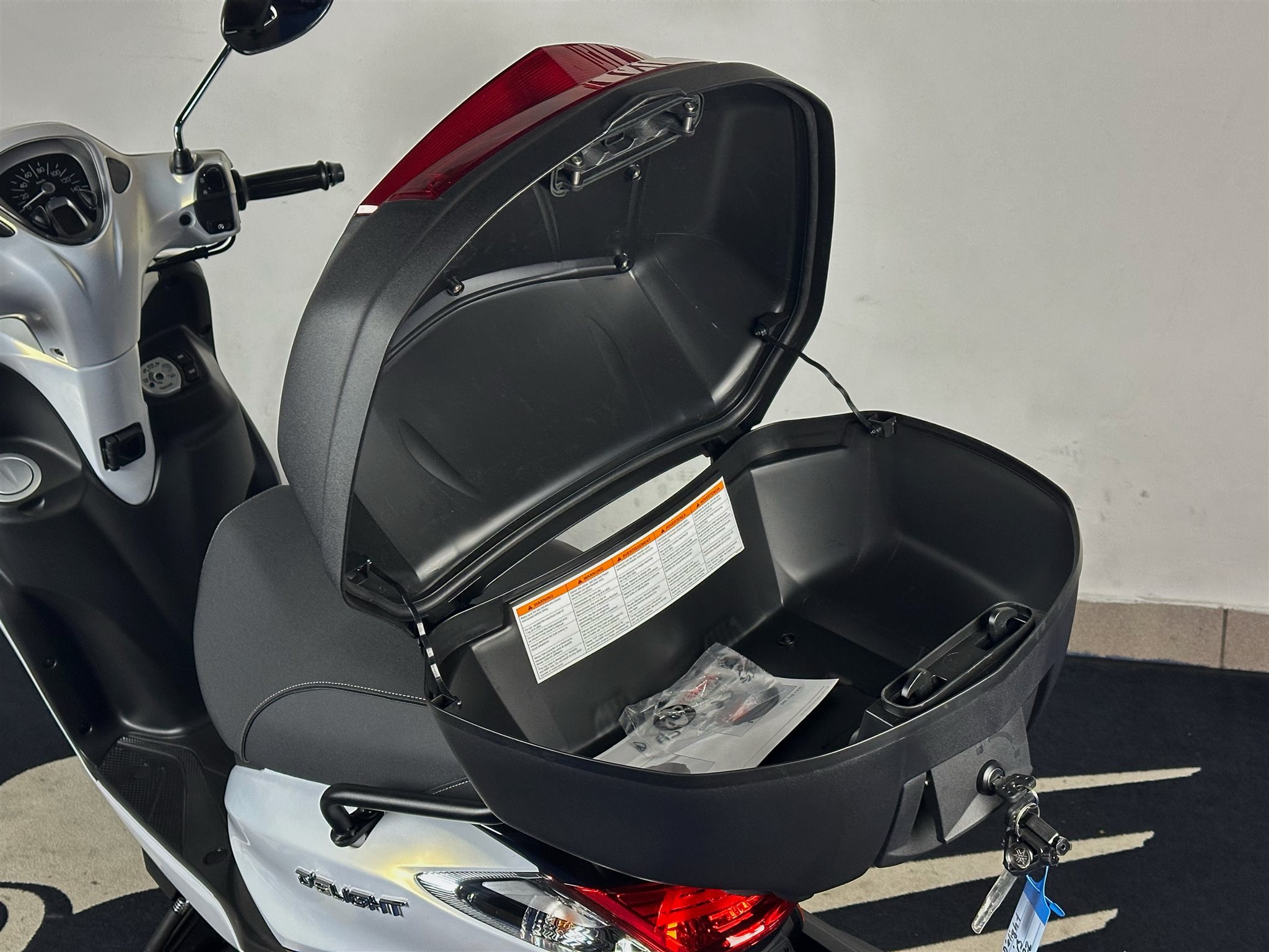 An diesem D elight wurde ein 39L Topcase inkl. Träger, Schloss, und Montageplatte verbaut.