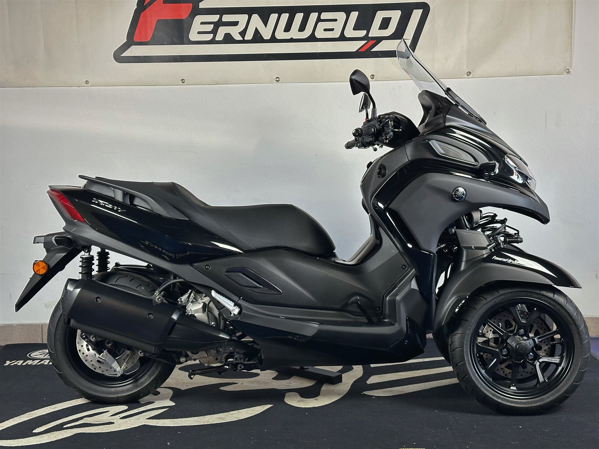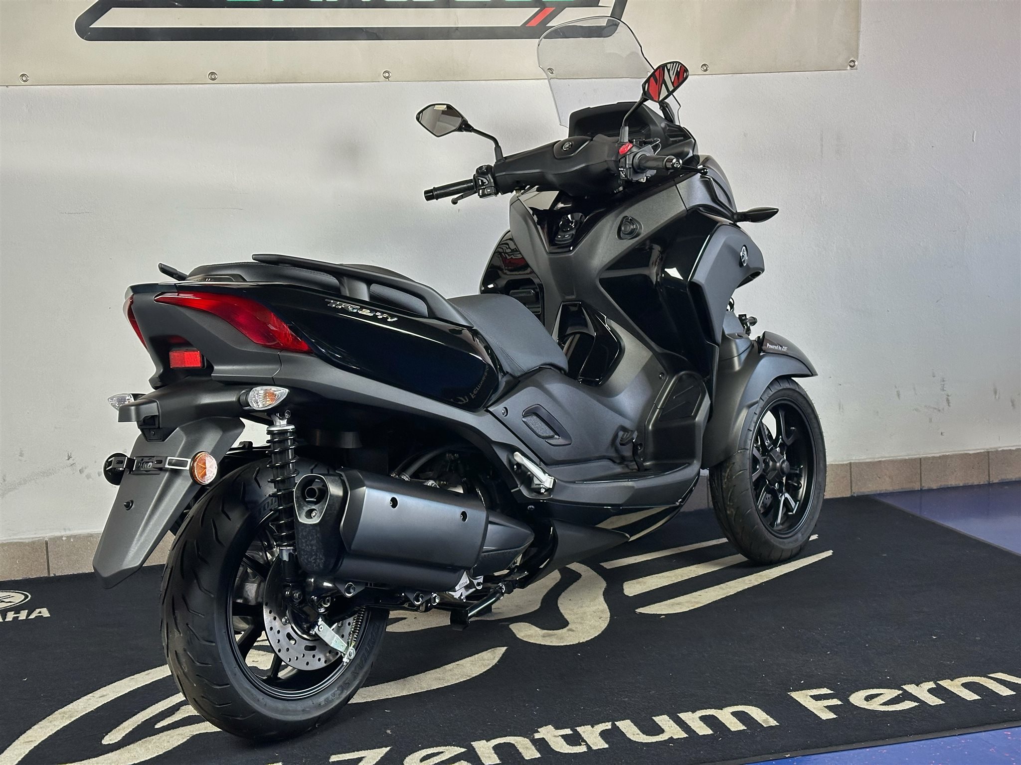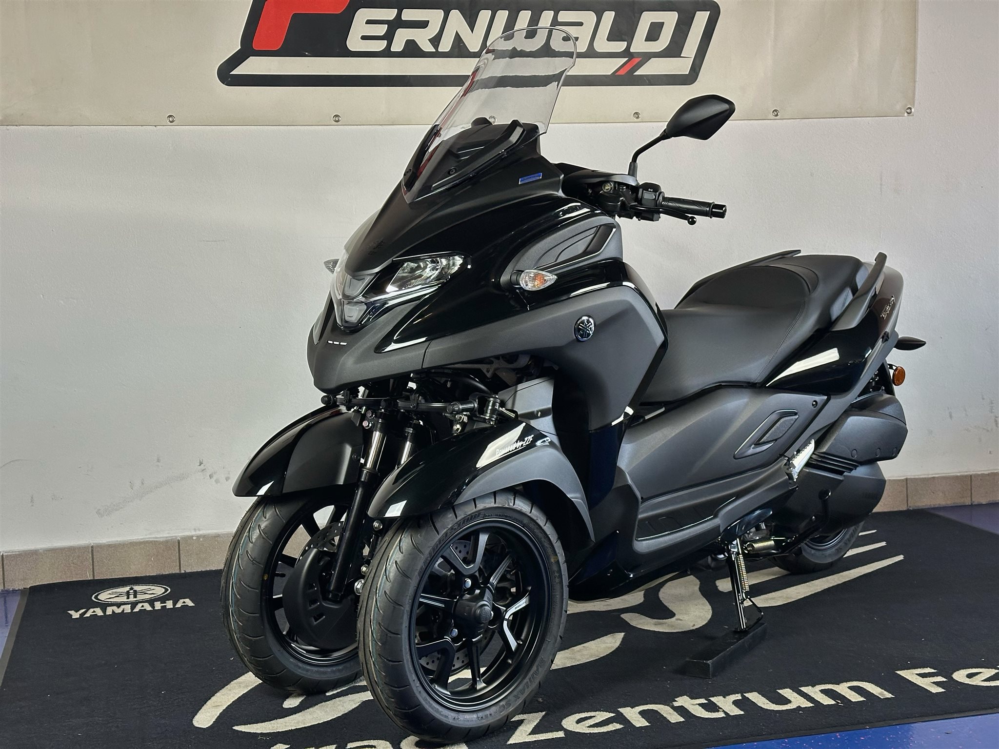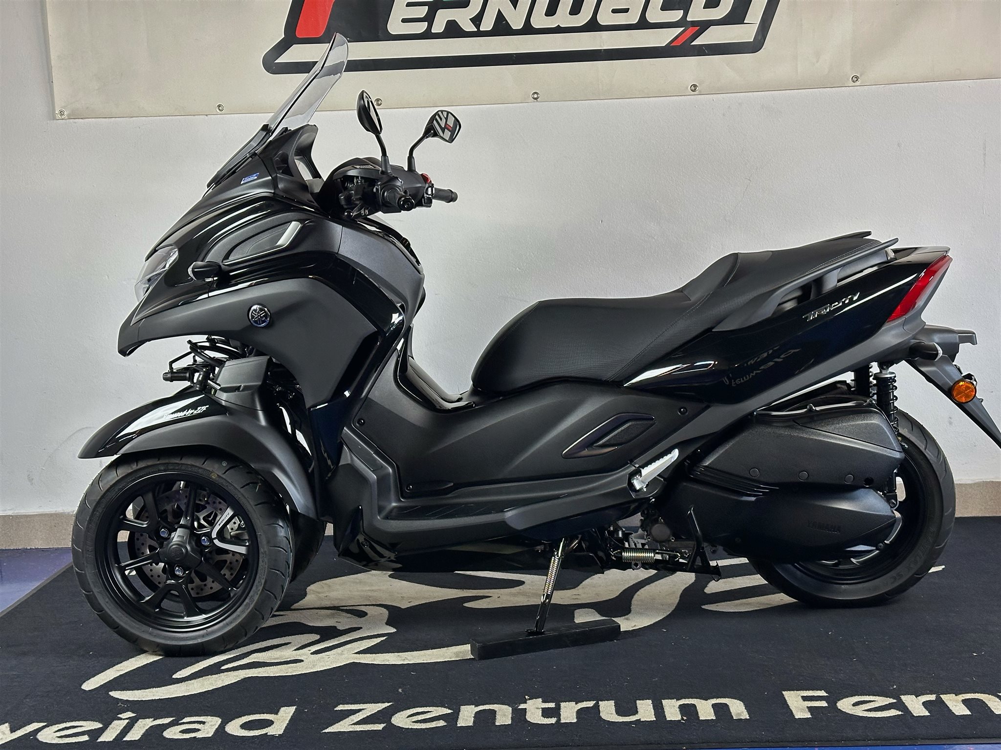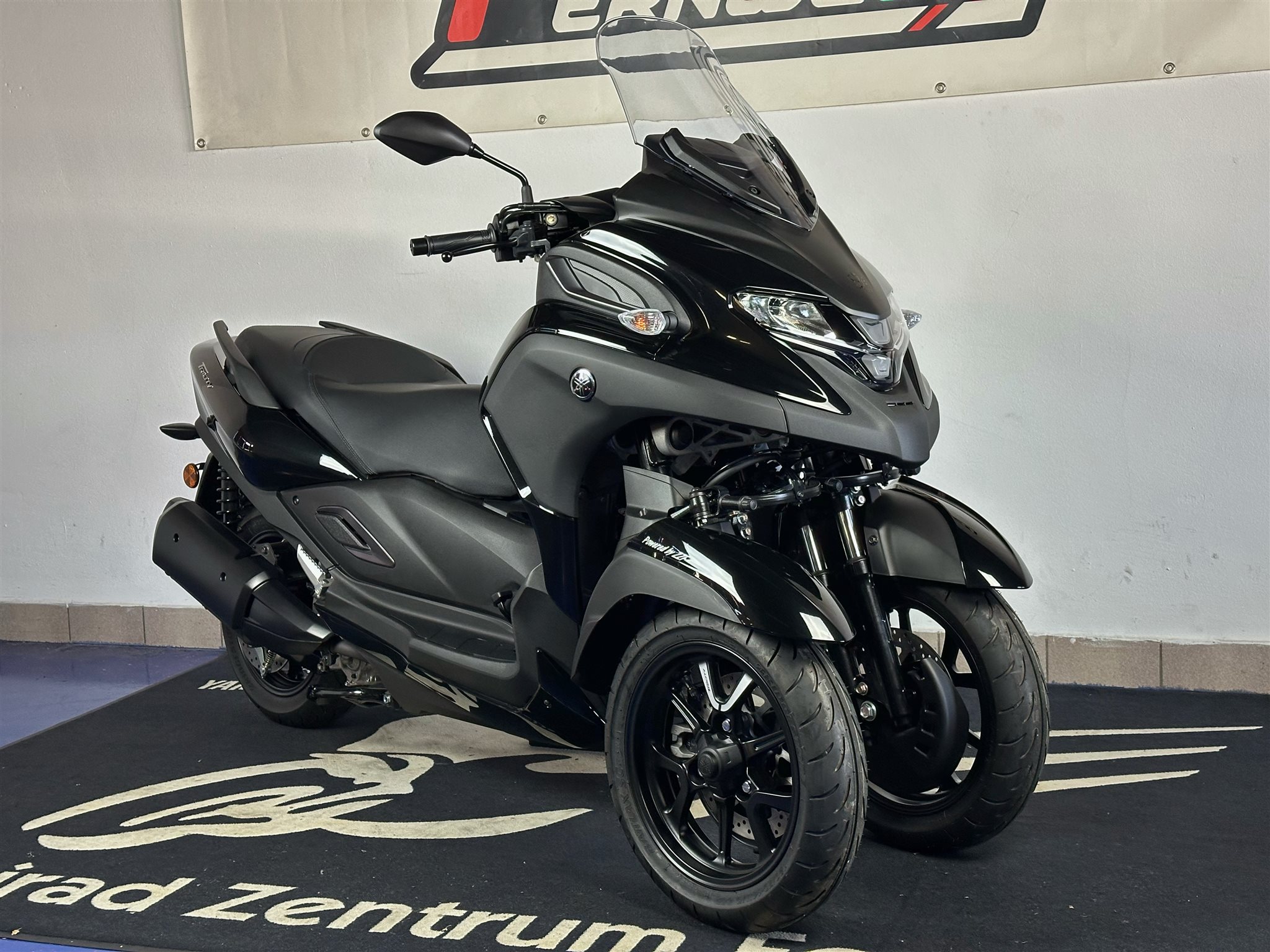 Diesen Yamaha Tricity 300 haben wir umlackieren lassen. Der Roller war vorher Zen Green (Hellgrün Mattlackierung) und wurde jetzt in Obisidanschwarz Metallic (Mercedes Benz Lack) umlackiert.